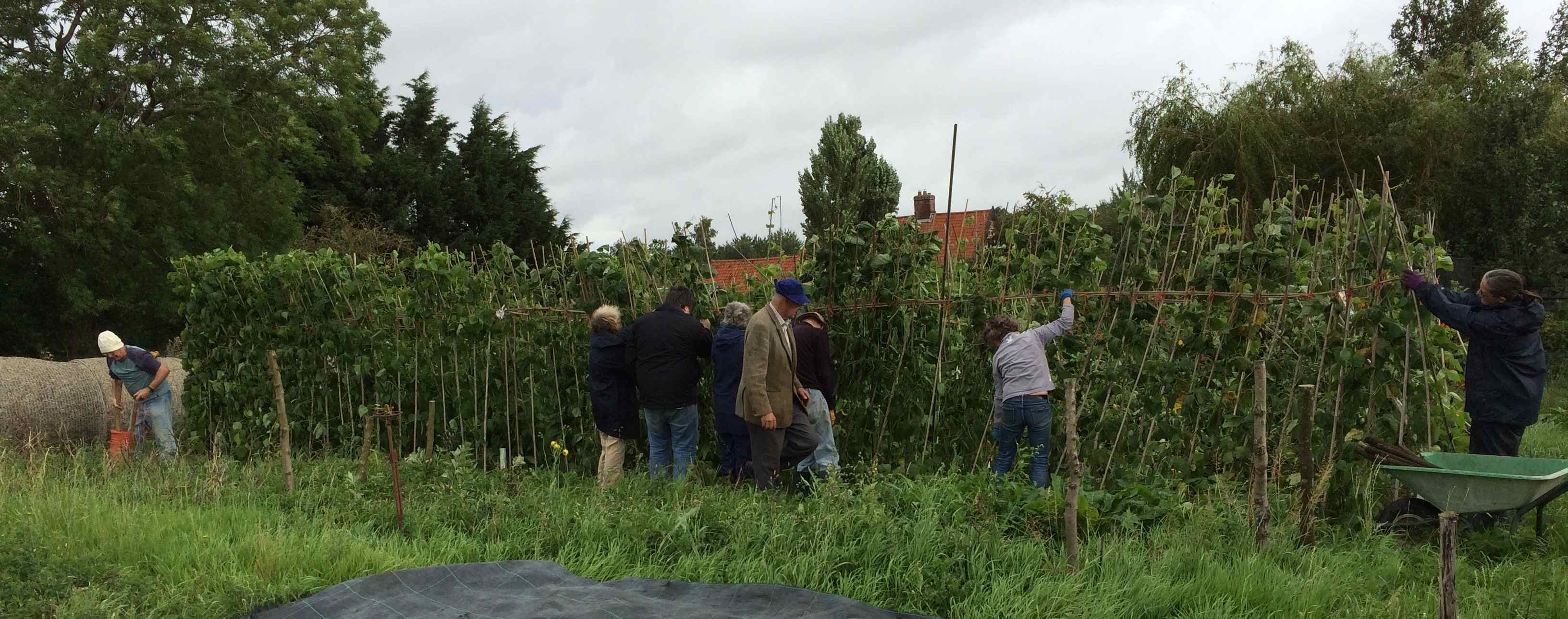 Today, at our work day, that was the main focus, and so we all worked together, raising the poles, putting in stakes and ropes to hold them, putting back those plants that had been ripped out of the ground.