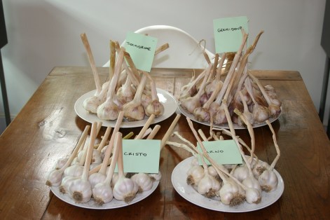 The 2017 garlic harvest has been of four varieties, with the weight of each member’s share following the name of the variety; Arno (558g), Cristo (682g), Thermidrome (846g) and Thermidour (1,551g).