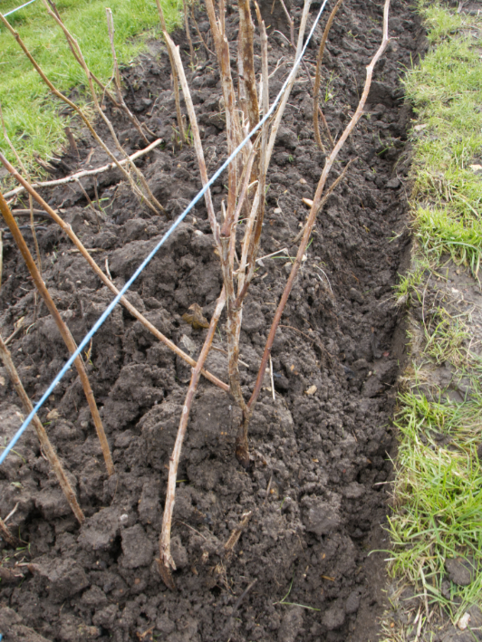 Trenches have been dug by the autumn fruiting raspberries to suppress weeds.
