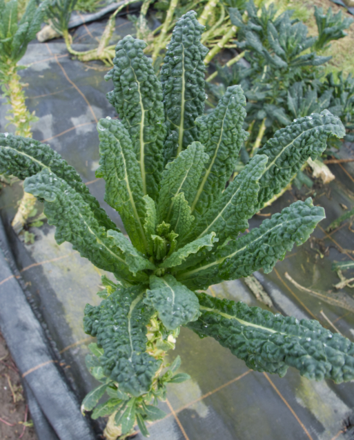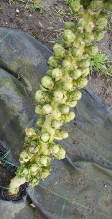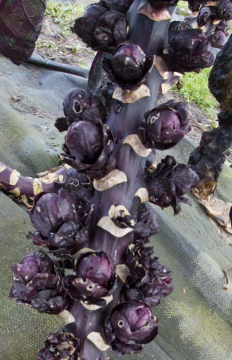 We are still harvesting cabbages, cavolo nero kale, both green and red brussels sprouts, while kalette stalks have been left in the ground to provide spring greens.