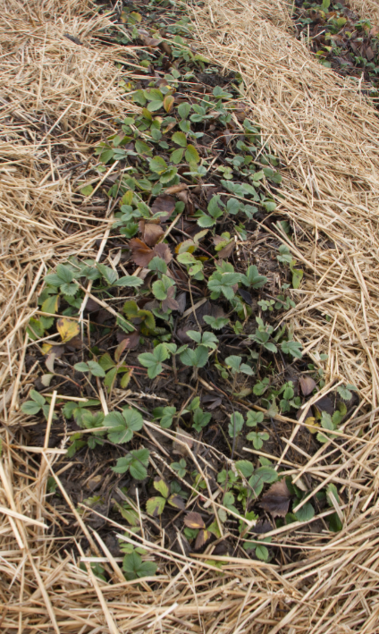 The strawberry patches are looking good after careful, time-consuming weeding and strawing.