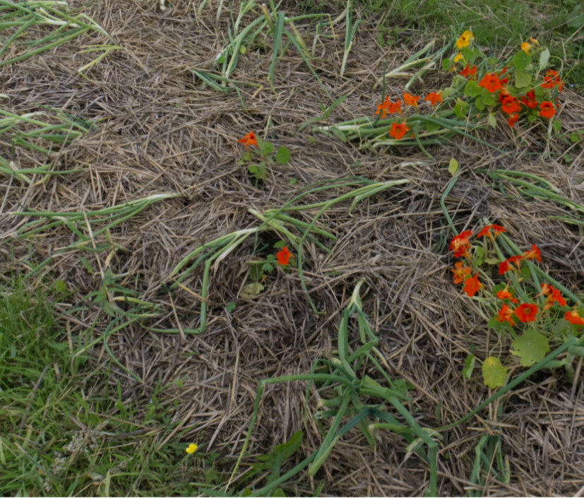 The weeds are growing well, so quickly that the red onions have been inundated and we are concerned only a few have survived; a case of fingers crossed.