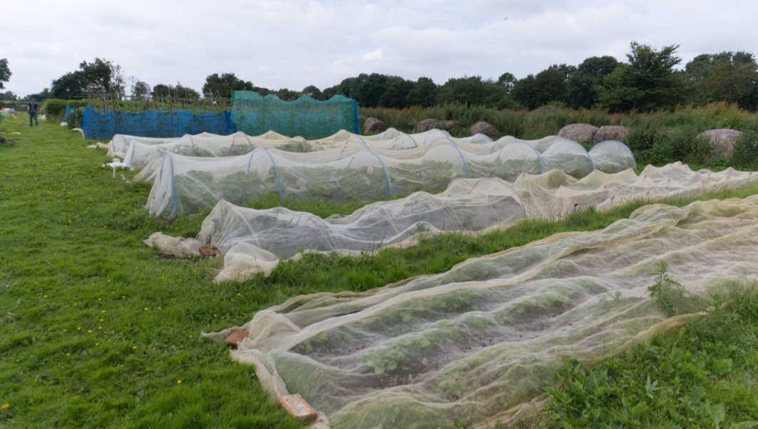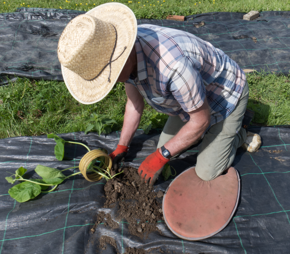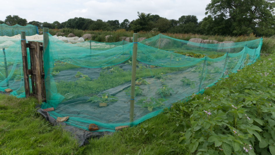 In battling the rabbits, even more patches have had to be covered, particularly during the young stage of growth. Netting now surrounds the squash beds.