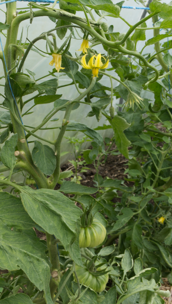 The celeriac didn’t appreciate the unseasonal cold temperatures, with some deciding to go to seed but even with the strange weather this year, crops are developing and ripening and our take home box now includes carrots, spring onions, mangetout, strawberries, rhubarb and the start of the red currants, basil, kale, chard and spinach.
