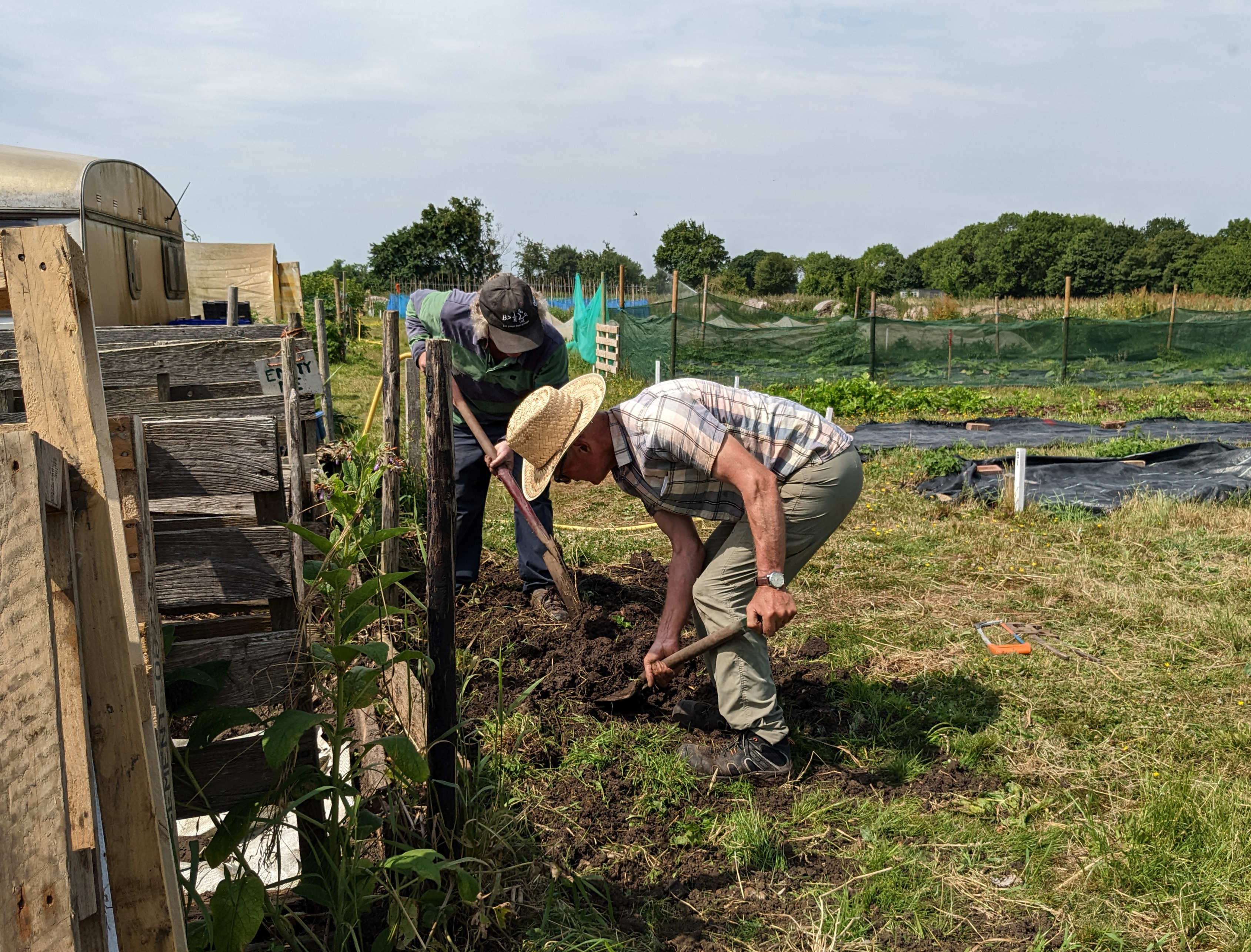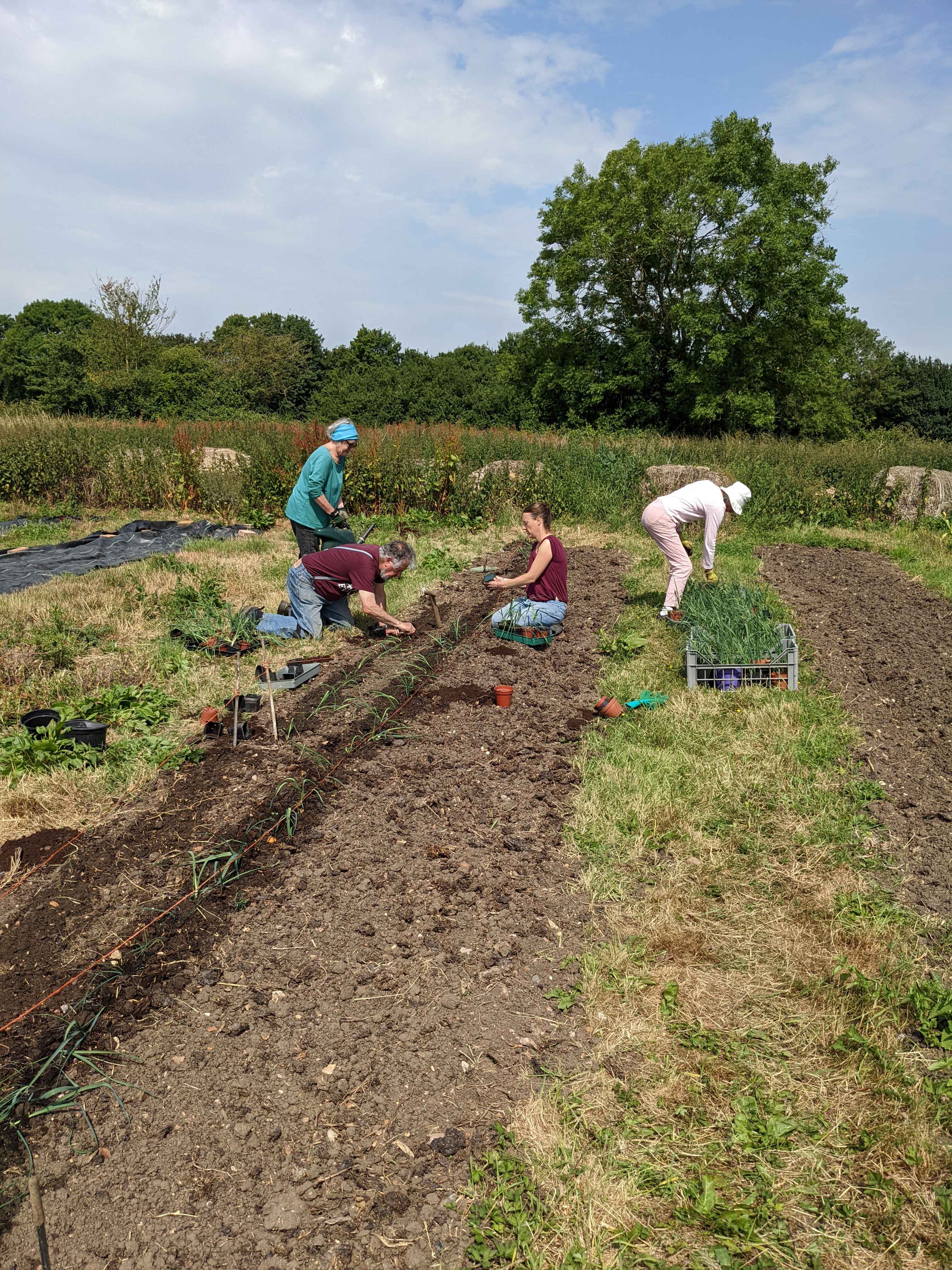 Apart from numerous other jobs, a leak in the water pipe was mended and with many hands, two patches were planted with leek seedlings.