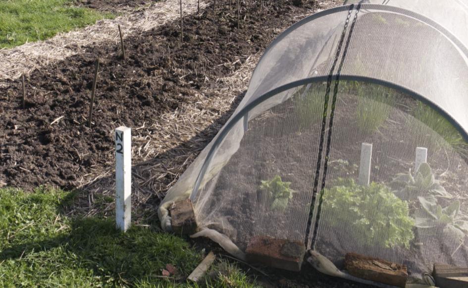 Some plants have overwintered under enviromesh.