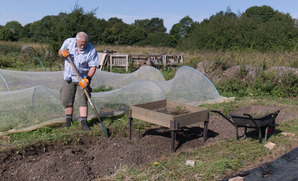Eleven of us were at the farm this morning; jobs included adding grass, weeds and wood ash to the compost bins and sieving soil in preparation for next year’s crops.
