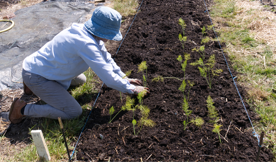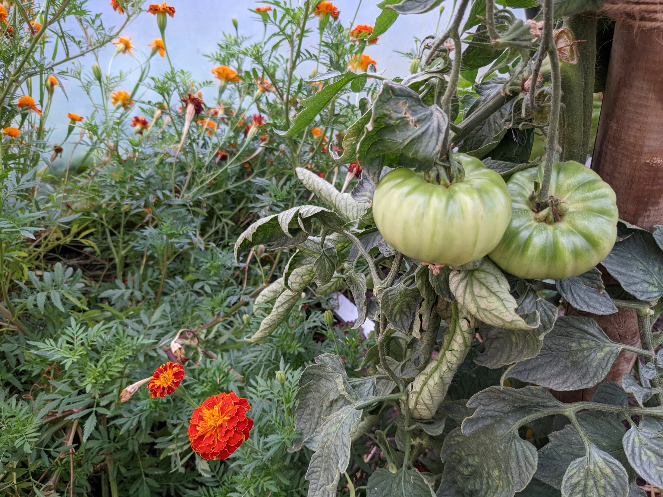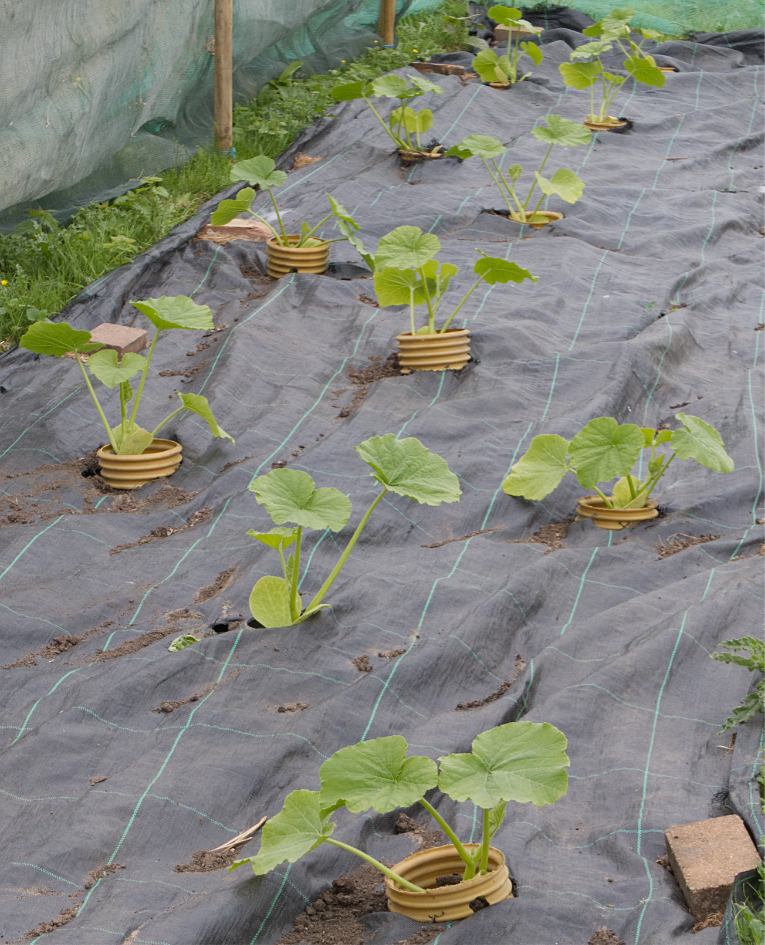 Squash raised at home by a crop parent, are now in their final growing positions.