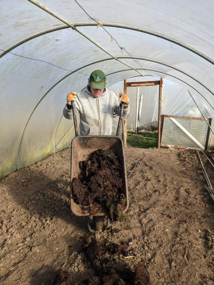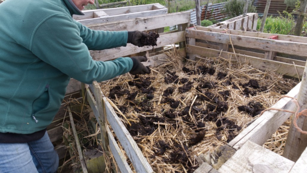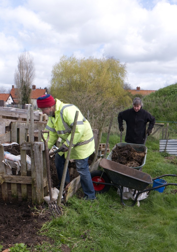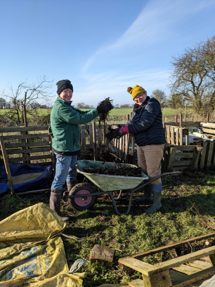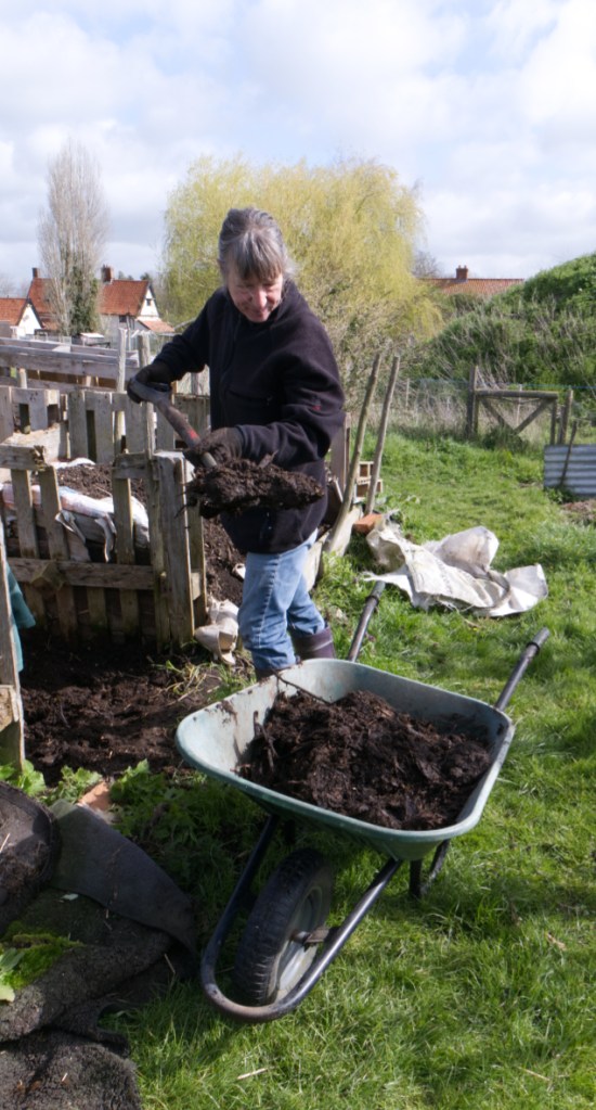 Biomass has been strimmed and is raked before seeds set, then layered into a “Fill me” bin. So a “before” photo of a full bin, to go with an “after” photo from 9th February which showed the lovely quality compost being produced.
