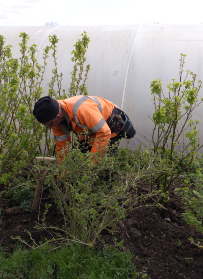 Much weeding has been done beneath gooseberry and currant bushes and then manure applied.